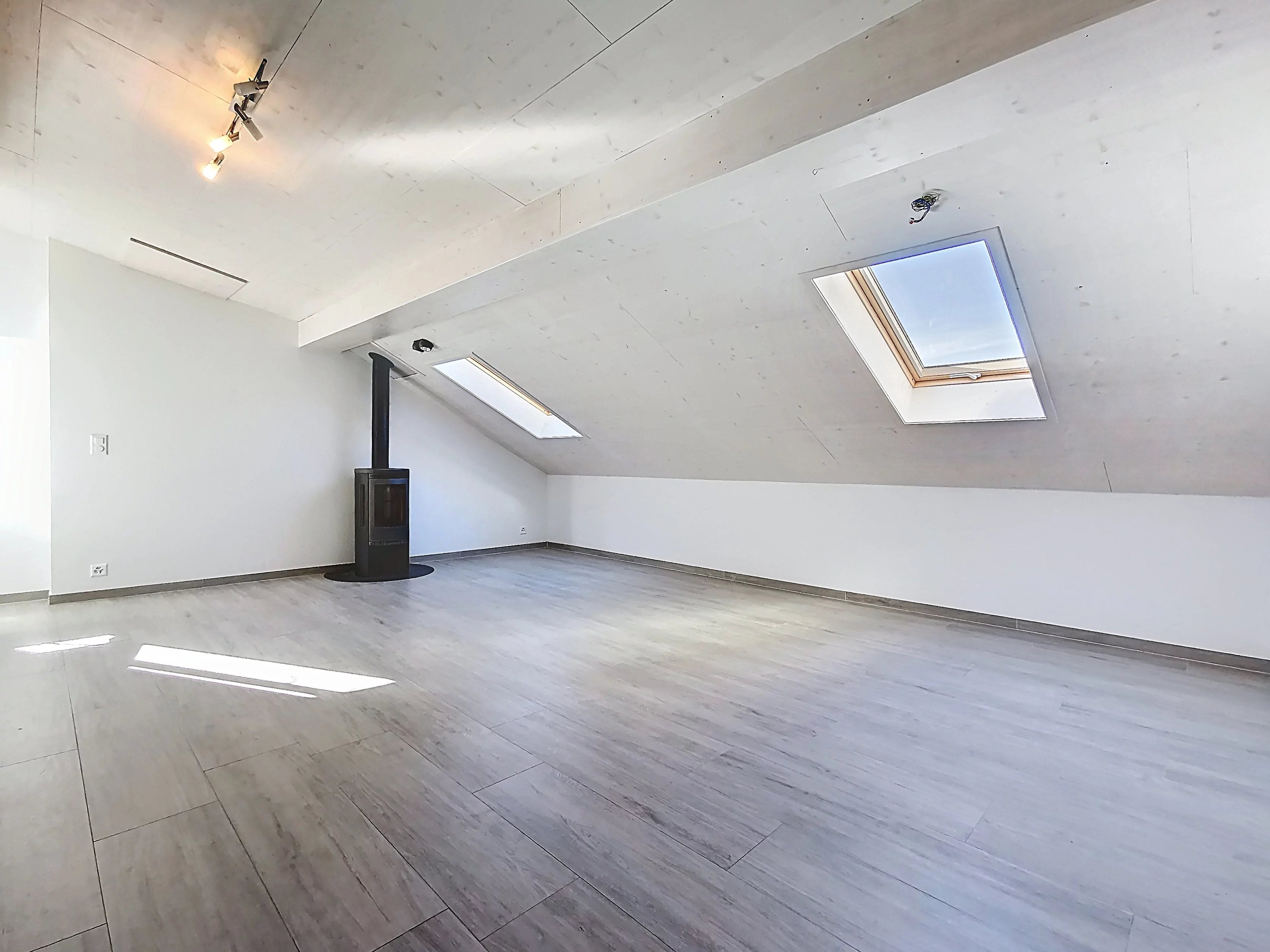 Ce logement bien pensé vous propose un grand living avec poêle, trois chambres et une salle de bain.