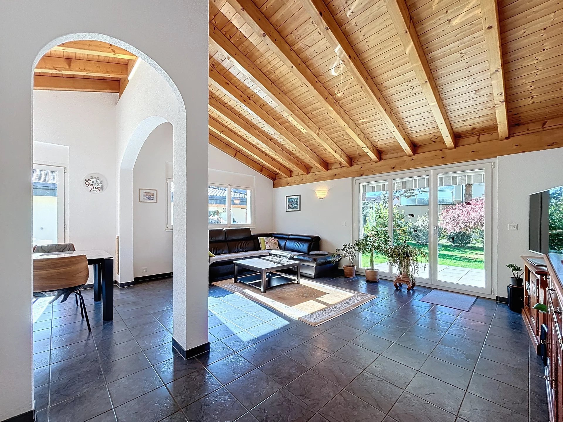 Omnia Immobilier Valais vous propose cette magnifique et spacieuse villa familiale entièrement rénovée en 2022, située dans un quartier résidentiel calme, à seulement 5 minutes de Sion et 5 minutes de Conthey.