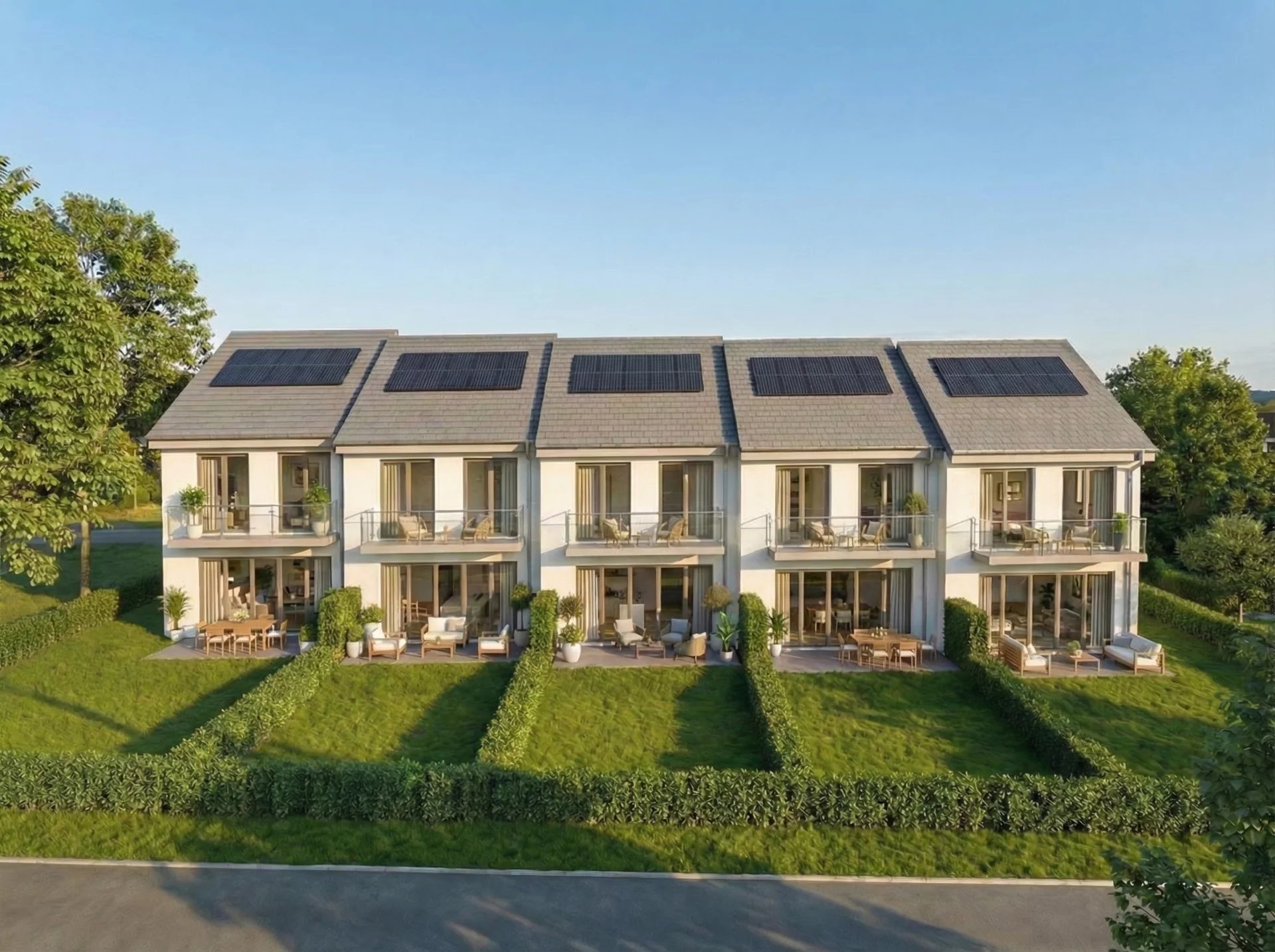 Conçue selon les standards Minergie, elle intègre chauffage au sol, panneaux solaires et finitions soignées pour un confort durable.